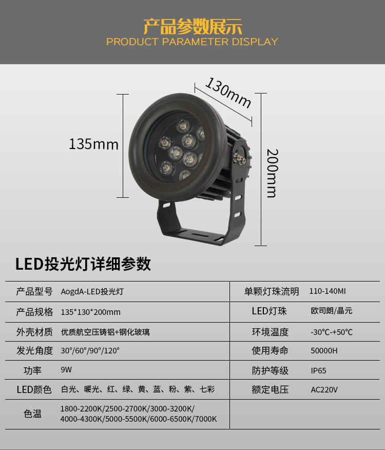 產品品名:新款LED投光燈;聚光投光燈